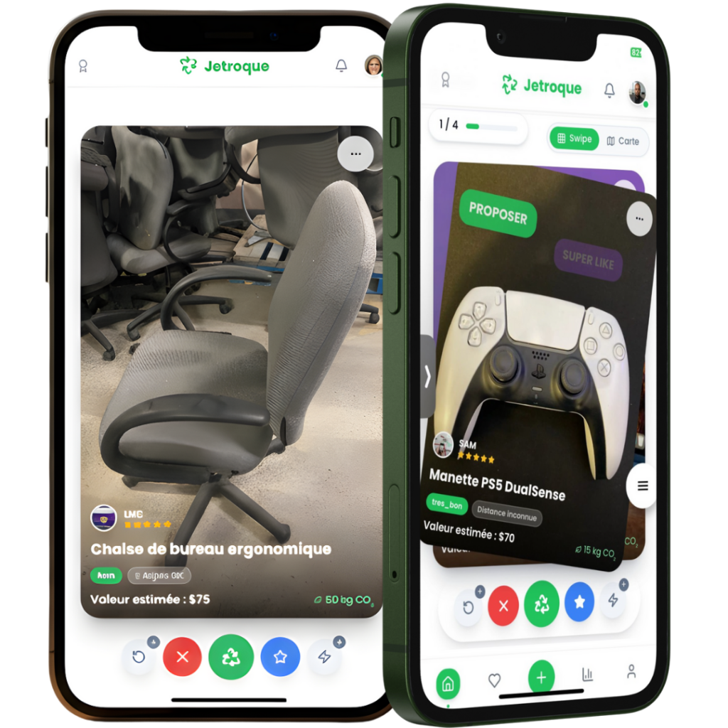 L'application n°1 d'économie circulaire au Québec. Prenez une photo, troquez vos objets entre voisins. Si non échangé en 60 jours, nous venons le chercher. inscription gratuite!