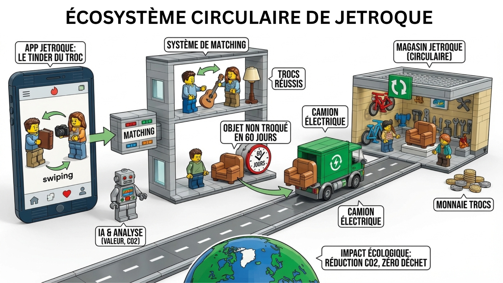C’est un écosystème complet, pensé pour créer une nouvelle économie locale basée sur le réemploi, l’échange et le partage.