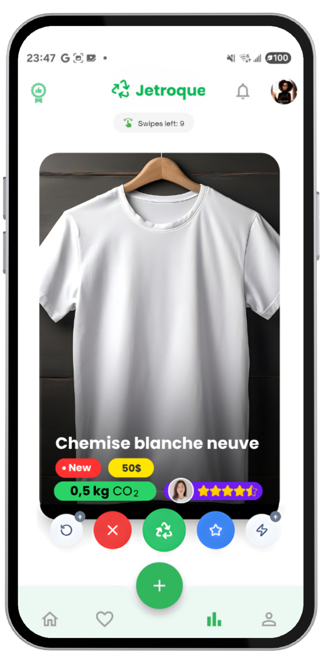 Jetroque combine IA, traçabilité blockchain et moteur de matching intelligent pour simplifier le troc, réduire les déchets et mesurer l’impact écologique en temps réel.